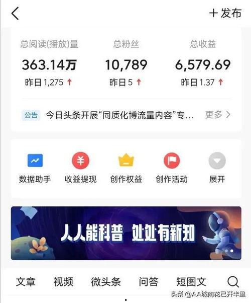 1. 强大的粉丝基础:头条号主凭借在平台上的活跃表现,积累了大量的忠实粉丝。这些粉丝不仅数量庞大,而且粘性极高,这对于自媒体来说,无疑是一笔宝贵的财富。